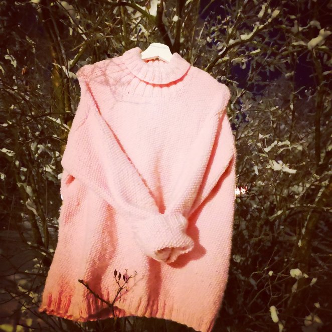 Så var den då färdig efter ca 3 veckor, dotterns önskade tröja i tuggummirosa. I lunull som inte kliar det minsta-underbart!! Och alldeles lagom tills det ska bli kallare igen.