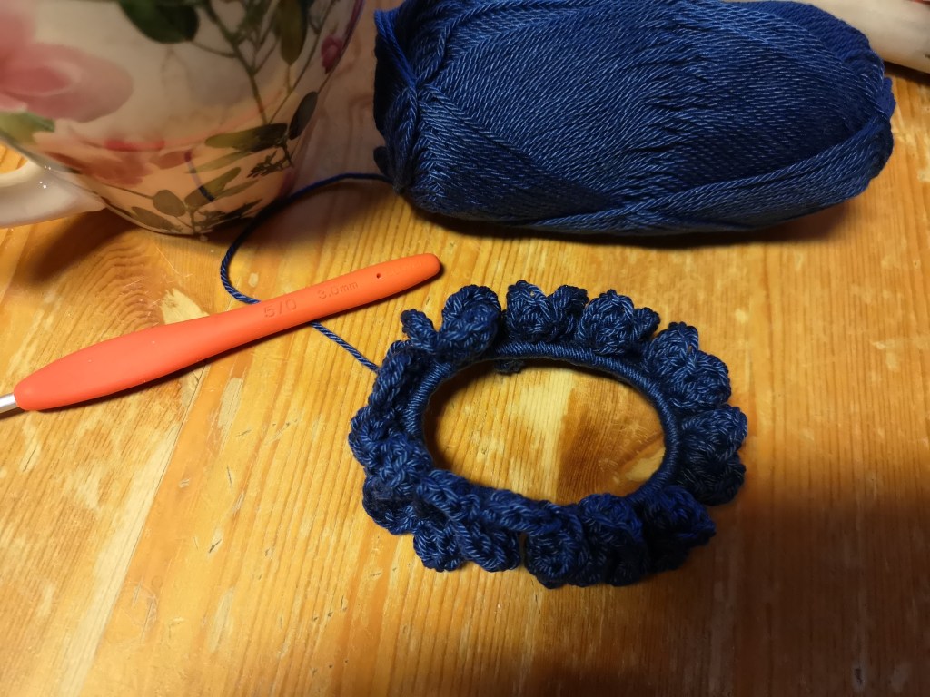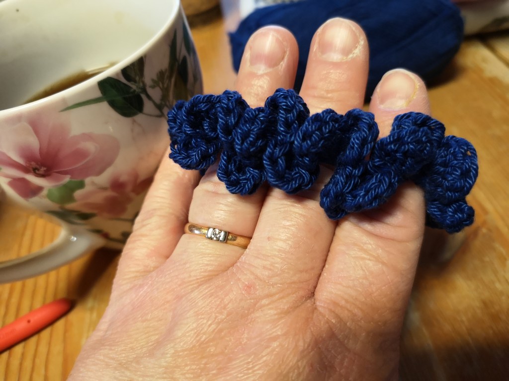 Här hemma finns det 2 tonårstjejer med långt och vackert hår; det ska friseras, flätas , sättas upp. Det behövs olika storlekar, har jag virkat i olika färger så det kan matchas med diverse outfits så ligger jag på plus – ja, ni förstår?
