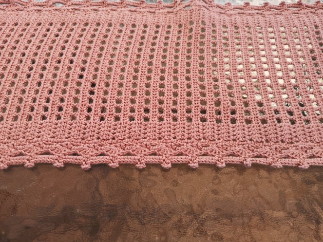 Löparen är 120 cm lång och 23 cm bred, virkad i Catona, men kan virkas annat 8/4-garn om man hellre vill det. Fast i annat garn får man ha lite koll på garnmängden dock,det är inte säkert att det blir detsamma som i mitt mönster.