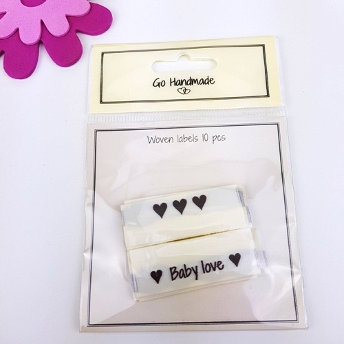 Bilden på tagsen är lånad från https://virknalarochtillbehor.se/produkt/textiltags-baby-love-beige-brun-10-p-go-handmade/ . där man också kan köpa dom om vill!